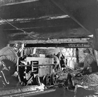 • Pit ponies pulling loaded coal-filled wooden mine cars underground at Newcastle Mine in 1914