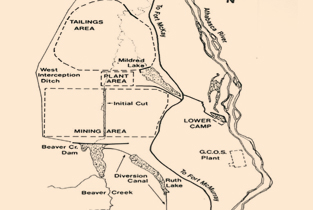 • Abasand Oils Ltd. plant, ca. 1941. Source: Provincial Archives of Alberta, PR1985.0333.DevelopmentofAthabaska.O.S.DeskCopy.021 - detail
