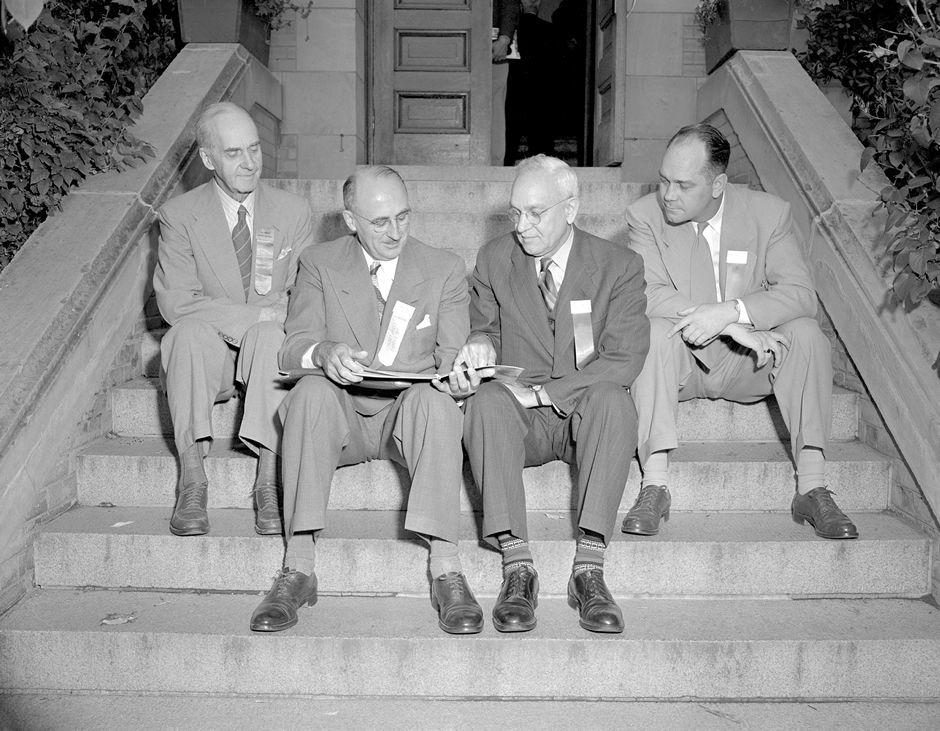 Sidney Kidder, Sidney Blair, George Hume, and Elmer Adkins (l to r) at the Edmonton portion of the Athabasca Oil Sands Conference at the University of Alberta, 1951